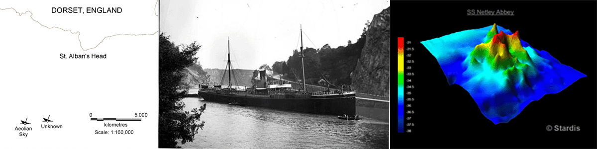 The popular guide to dive sites along the Dorset Coast ‘Dive Dorset’ [1] has a site under the name ‘Hartburn’ in which it describes a large iron steamship and asks for feedback as to cargo to help identify the site correctly. The cargo is coal and the Hartburn was carrying railway trucks, therefore not correctly identified. Following a trail of original documents and testing theories by targeting dives to specific features on the shipwreck draw the conclusion that the correct name is the SS Netley Abbey.