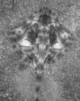 Ray “Charles” was the role model used to develop the image processing sequence that allows individual rays to be identified from the patterns on the fish. He was seen and photographed twice on a single dive in September 2013. At the time, the second photograph of Charles was suspected to be of a fish seen earlier in the dive, however, conditions were not good and the resulting photographs were of poor quality. Although used to develop this process Charles has not been seen since, he is therefore the only ray to be named who has not been seen on more than one day.