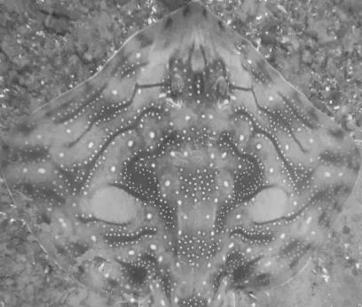 “Juno” was photographed on 2 occasions in 2014 approximately one month apart. On the first occasion (August 2014) Juno was lying close to a larger ray; she was not noticed at the time and only seen in subsequent image where she shows, but not fully in the bottom left of the photograph. Being at the outer extent of the lens the image of her is also partially distorted. Initially it was thought impossible to achieve a good identification picture however, an attempt was made and included with the other images of both male and female fish, her sex being found from the first image. It was a surprise to be able to clearly match this with an image one month later in early September and provides additional confidence in the ability to match from partial images.