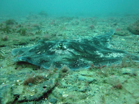 “Fraydo” has been photographed twice, a few days apart at the end of August and beginning of September 2013. He is the ray in the foreground of the photograph. This image is often used because, if you look closely, there is a second ray over toward the top left. His friend, has not been seen again, however, as this photo shows their camouflage is very effective and they can easily be missed, so we can’t say they were not there, we may simply have missed them. His name is probably obvious to anyone who has had children in the last 15 years or to those of us who read the Tolkien books as the primary hobbit.